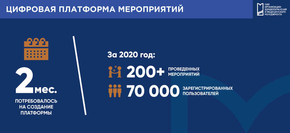 Научно-исследовательский институт организации здравоохранения и медицинского менеджмента Департамента здравоохранения города Москвы в соответствии с приказом Департамента здравоохранения города Москвы от 24.12.2014 г. № 1115 «Об организации проведения конгрессно-выставочных мероприятий под патронатом Департамента здравоохранения города Москвы» осуществляет работу по подготовке ежегодных планов конгрессно-выставочных и научно-образовательных мероприятий, проводимых под патронатом Департамента здравоохранения города Москвы, и осуществляет организационно-методическую поддержку данных мероприятий. В Институте работу по организационно-информационному сопровождению мероприятий столичной медицины осуществляет Отдел конгрессно-выставочных мероприятий.